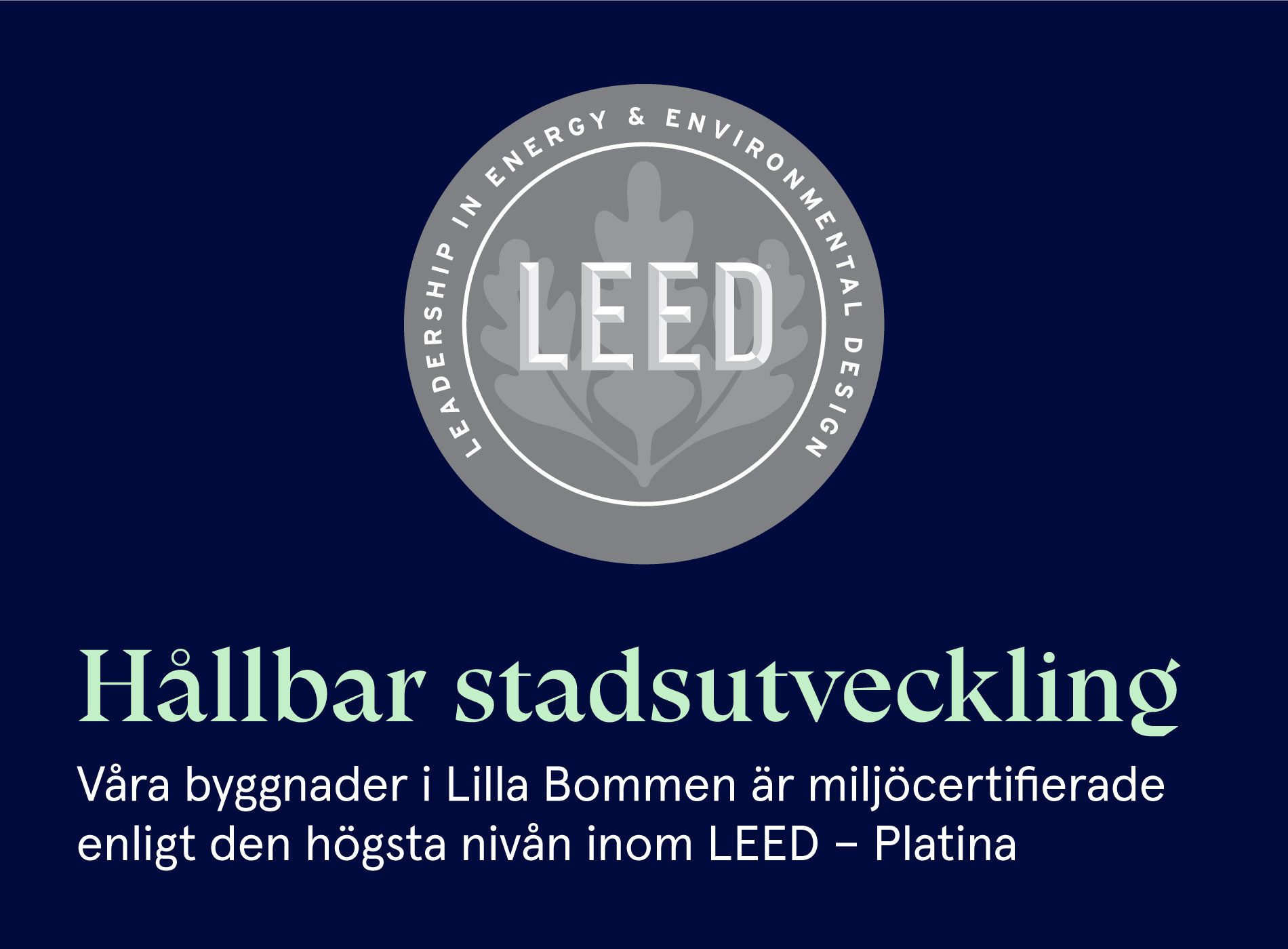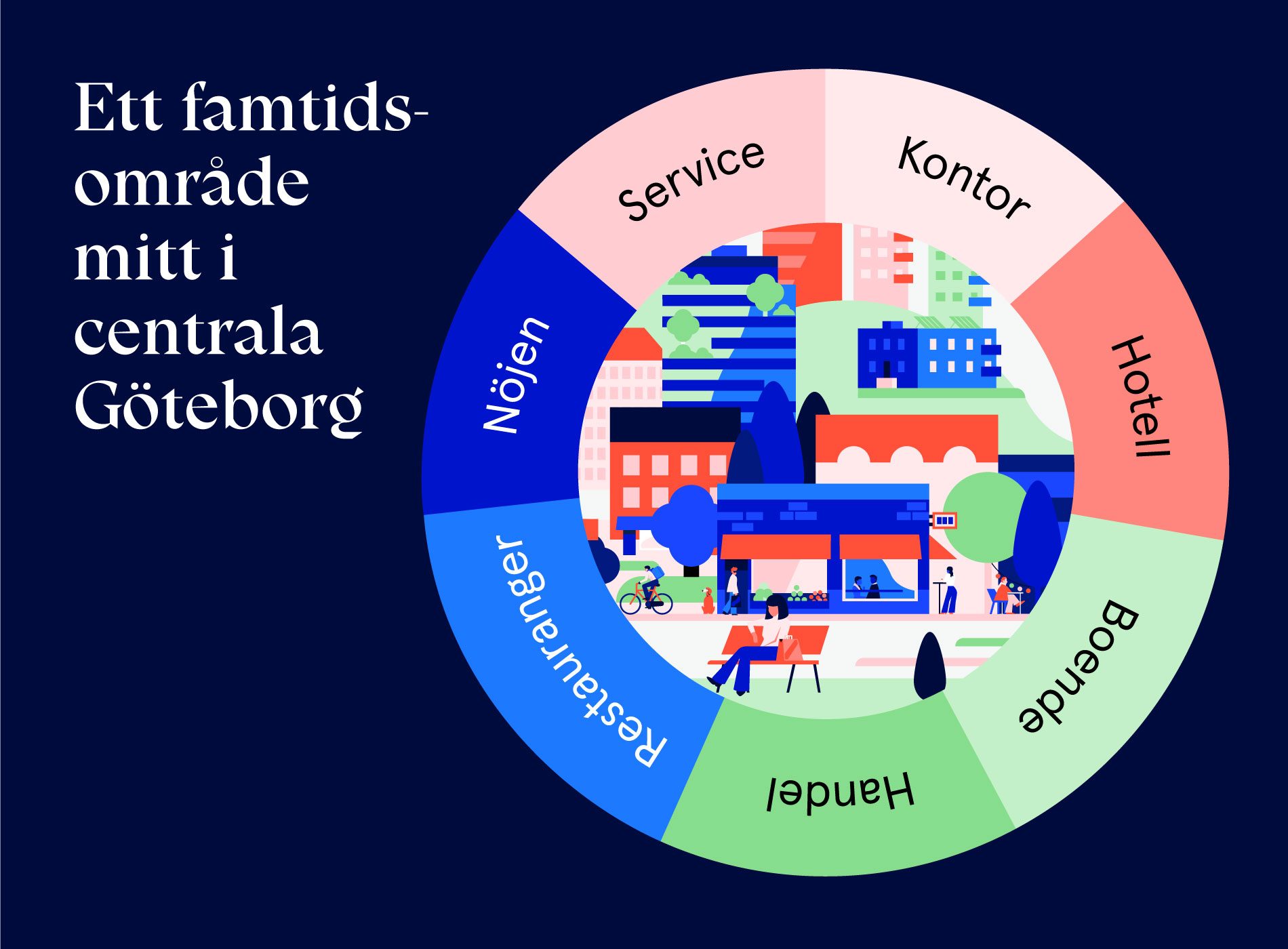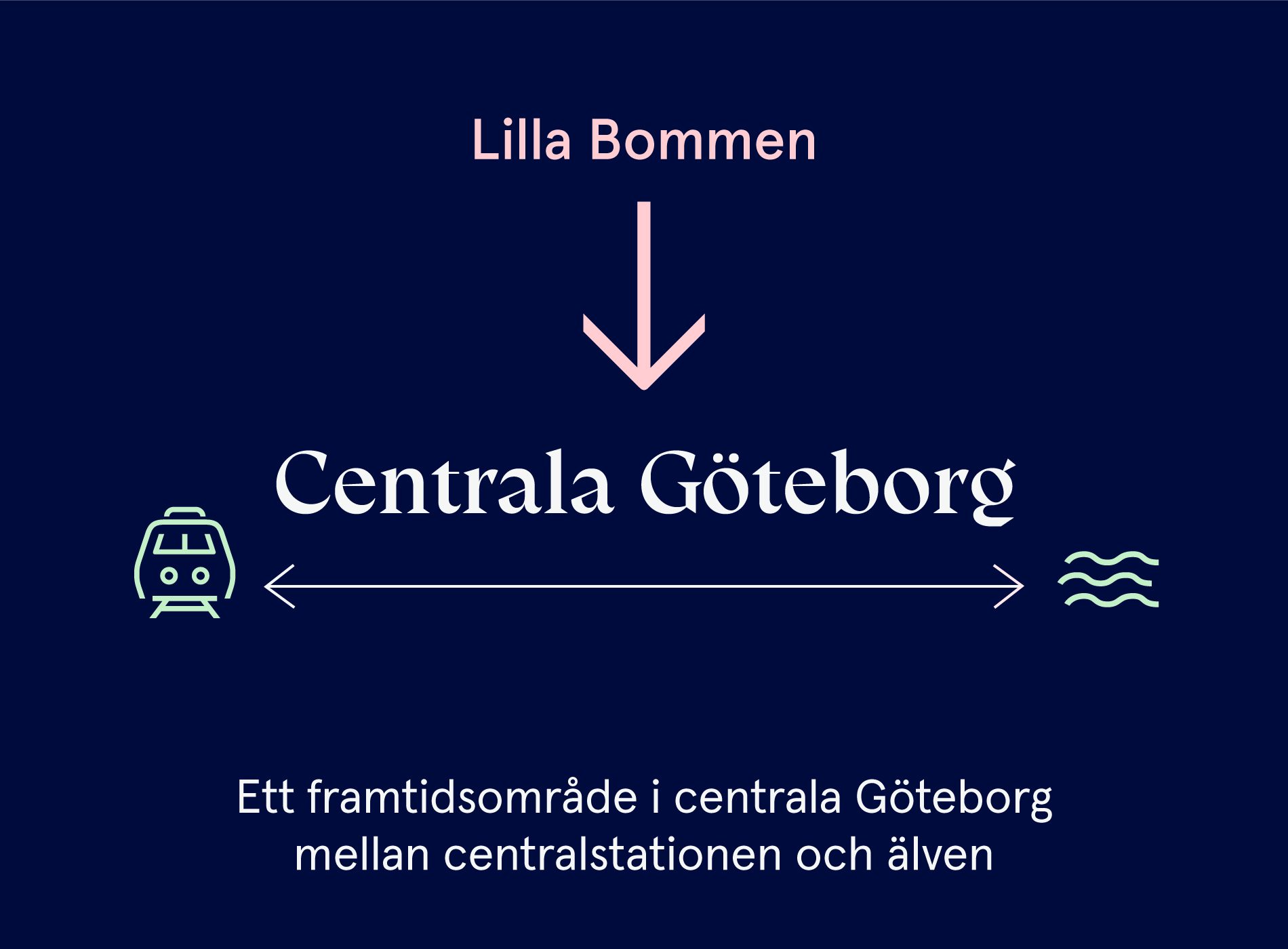 Med utvecklingen i Lilla Bommen bidrar vi till stadens mål om att möta vattnet, stärka kärnan och hela staden. Här skapar vi platser för människor att mötas över gränser, exempelvis i form av uttrycksfulla fastigheter med attraktiva arbetsplatser för olika typer av företagande, ett blandat utbud i gatuplan och innehållsrika mellanrum mellan husen, ett levande kajstråk liksom en stadsmiljö som växer hela vägen fram till vattnet med stråk som knyter samman staden via Hisingsbron. Lilla Bommen blir ett centralt nav och en knutpunkt mitt i staden.