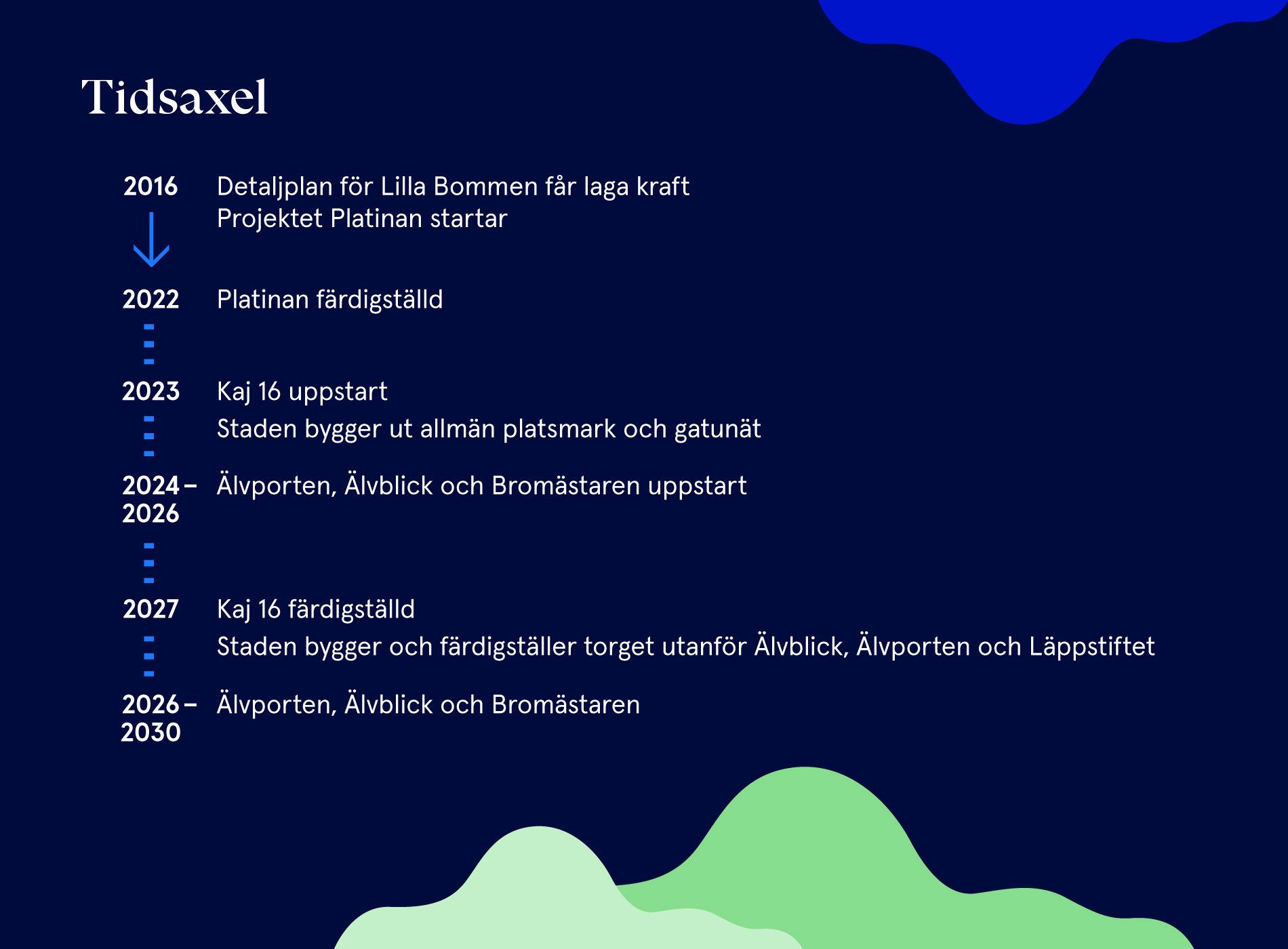 Lilla Bommen är med sitt centrala läge vid nya Hisingsbron, mellan Centralstationen och älven, en viktig del för att knyta samman staden med vattnet. Vår vision är att området ska omvandlas från kontorsområde till en levande och kajnära stadsdel där människor umgås, arbetar, tränar, fikar, promenerar, bor, shoppar och uträttar ärenden, njuter av vattnet och mycket mer.