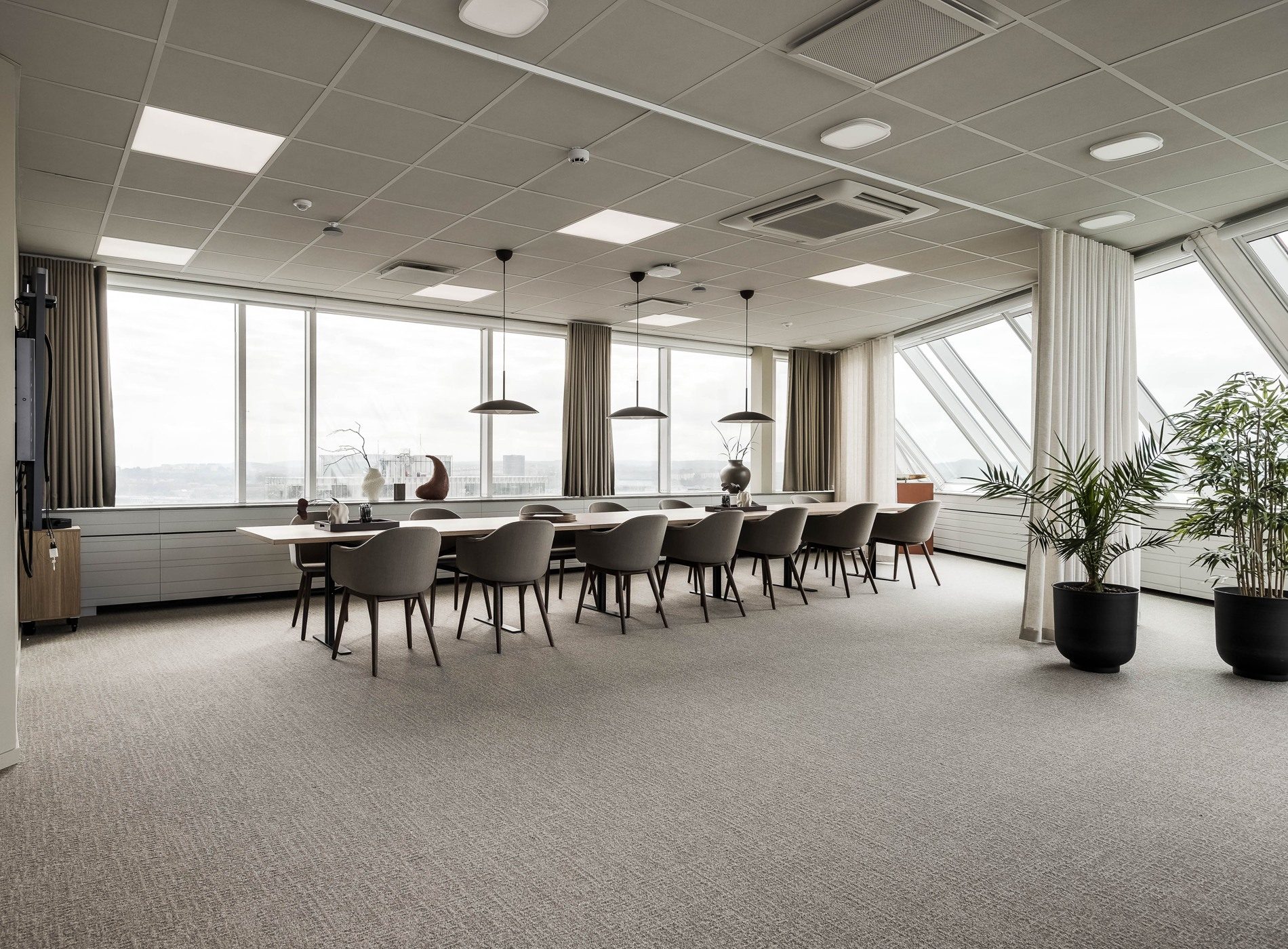 Möblering: Fast styrelsesittning med angränsande loungedel.